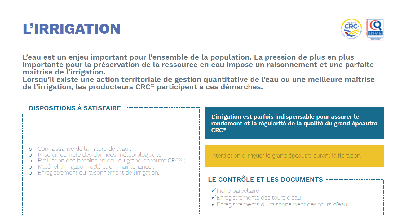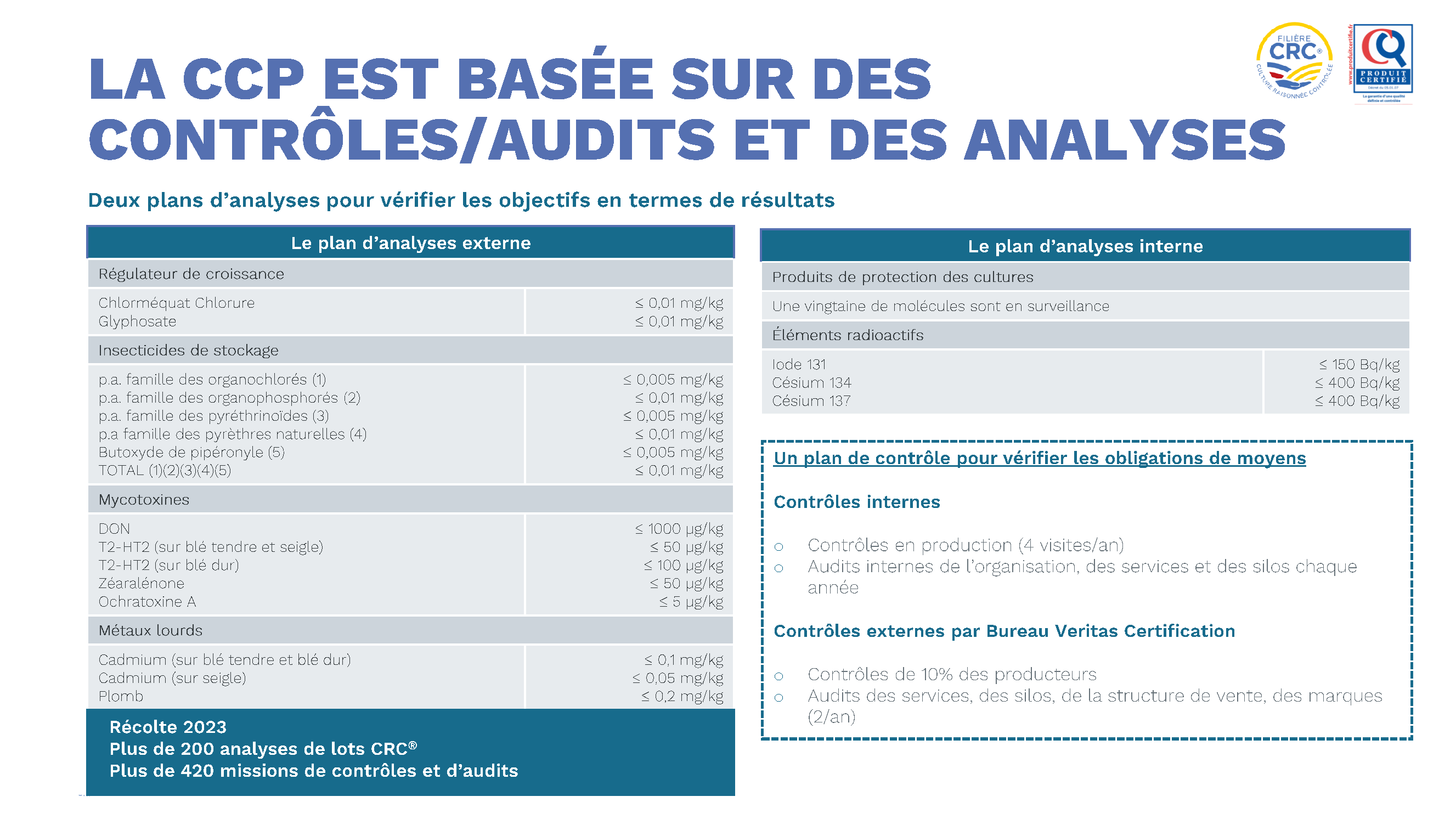 La Filière CRC® repose sur l’application de cahiers des charges validés et contrôlés qui encadrent la production et la transformation des céréales.