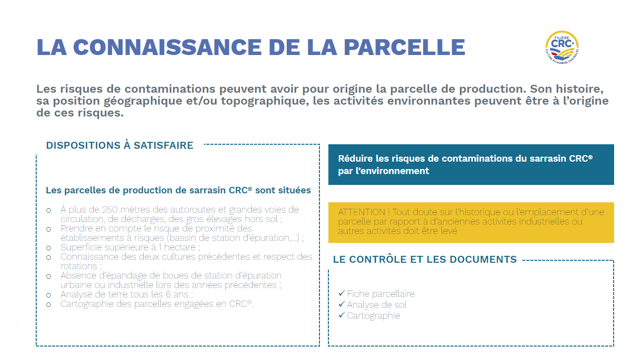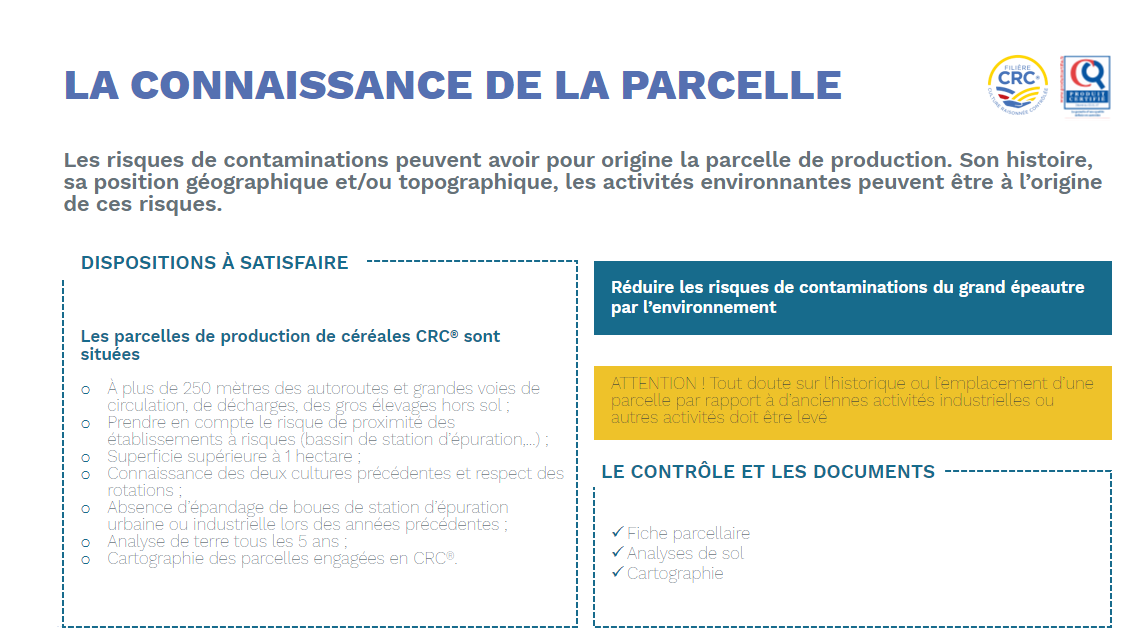 Les risques de contaminations peuvent avoir pour origine la parcelle de production. Son histoire,