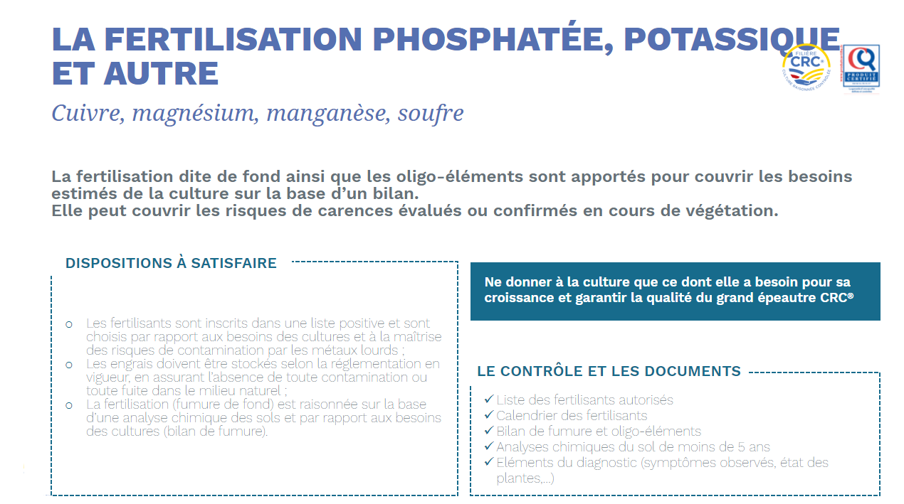 techniques de production et améliorer la maîtrise de la qualité des productions CRC®.