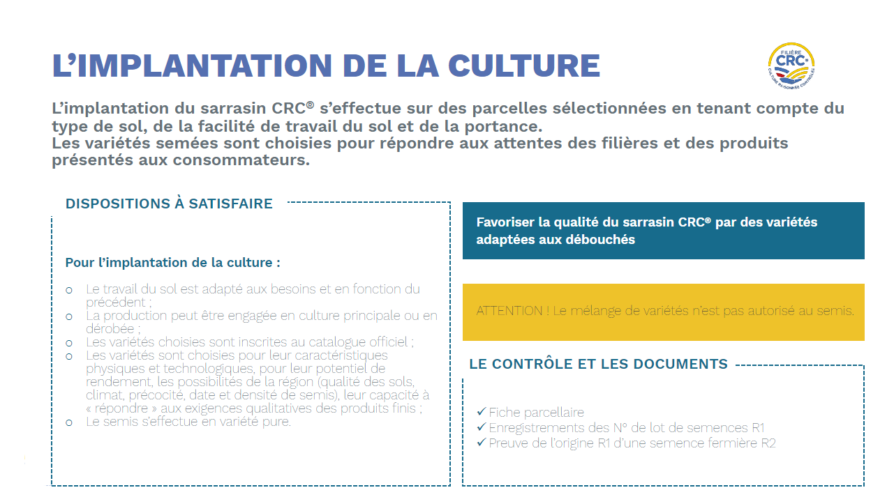 Les variétés semées sont choisies pour répondre aux attentes des filières et des produits